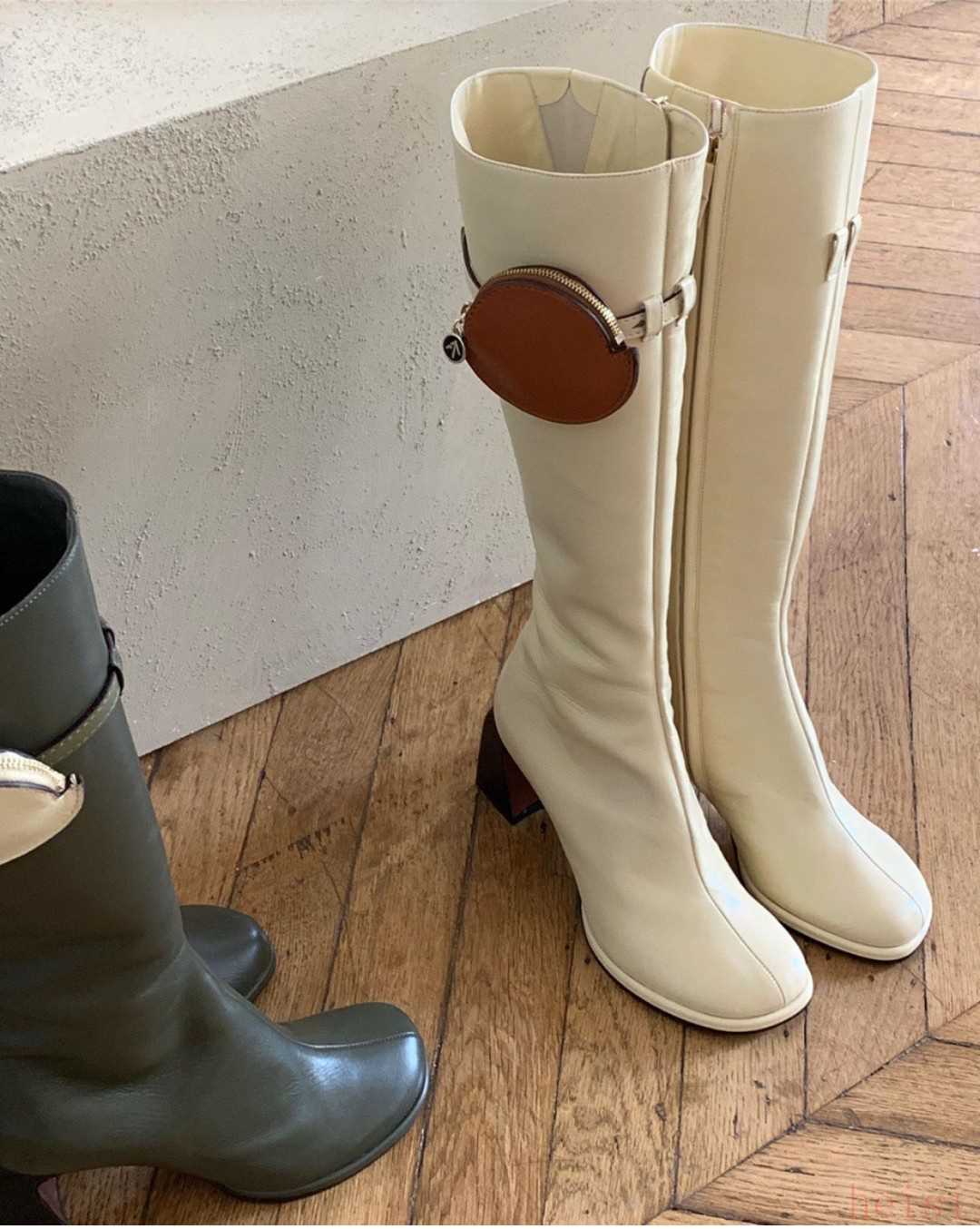 這雙長靴柔軟的皮質(zhì)可以更好的修飾腿型,再加上不過膝這種剛剛好的長度,系上這個小包包,顯得腿又細(xì)又長。