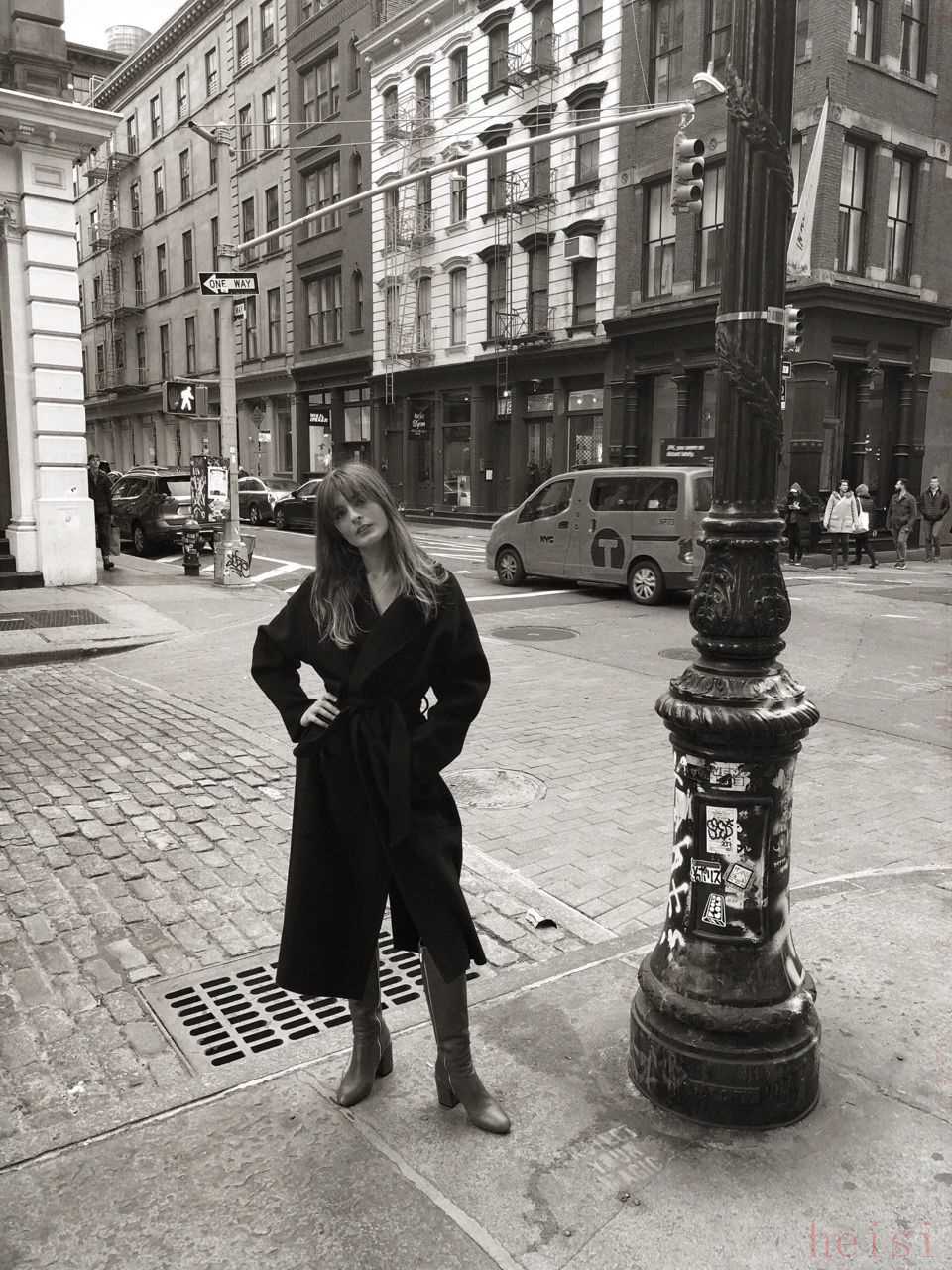 Ann Demeulemeester的不過膝長靴也可以來搭配各種風(fēng)格的造型,除了暗黑,它還有很多可能性。Kylie曾用它配Max Mara的大衣,棕+黑的搭配也是低調(diào)又大氣。