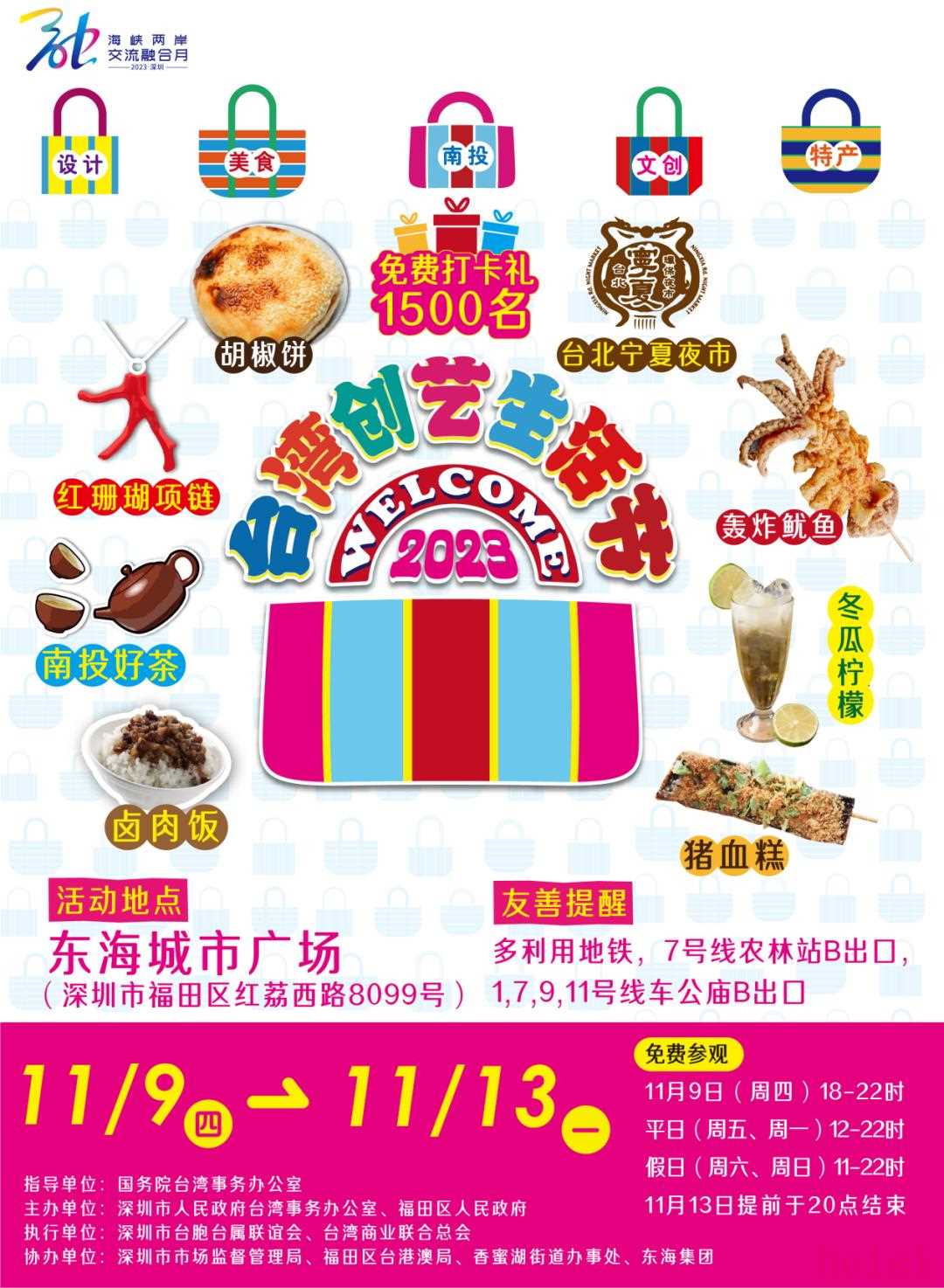 11月9日-11月13日來(lái)自臺(tái)灣的美食小吃、文創(chuàng)商品農(nóng)特產(chǎn)品齊聚福田完整呈現(xiàn)臺(tái)灣地道風(fēng)情拉近深臺(tái)兩地民眾距離