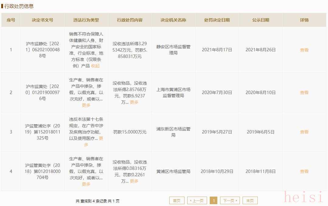 這并非卡索多麗婭首次被監(jiān)管部門行政處罰,國(guó)家企業(yè)信用信息公示系統(tǒng)顯示,自2018年以來(lái),公司已4次被處罰,罰金合計(jì)近30萬(wàn)元,違法行為包括“在產(chǎn)品中以次充好”、“銷售不符合保障人體健康的產(chǎn)品”以及“在廣告中使用醫(yī)療用語(yǔ)”。