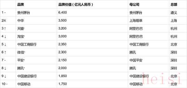 200強中,非國有品牌占六成,國有品牌占四成。微信、平安保險、騰訊、中國建設銀行、中國移動依次位列前十名的后五名。茅臺是第二次位居榜首,中華今年一舉躍升16位到達第二,而天貓則上升2位。