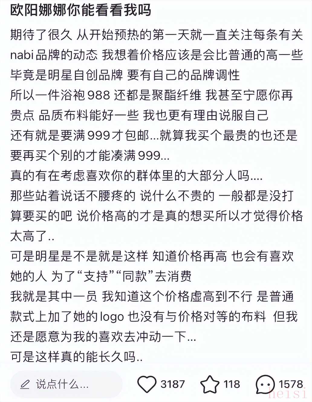 "利用粉絲情懷:" 歐陽(yáng)娜娜作為公眾人物,擁有大量粉絲,這些粉絲出于對(duì)她的喜愛和支持,可能會(huì)更容易接受高價(jià)產(chǎn)品,甚至忽略產(chǎn)品的實(shí)際價(jià)值。這種行為被認(rèn)為是利用了粉絲的情懷和情感,進(jìn)行“割韭菜”。