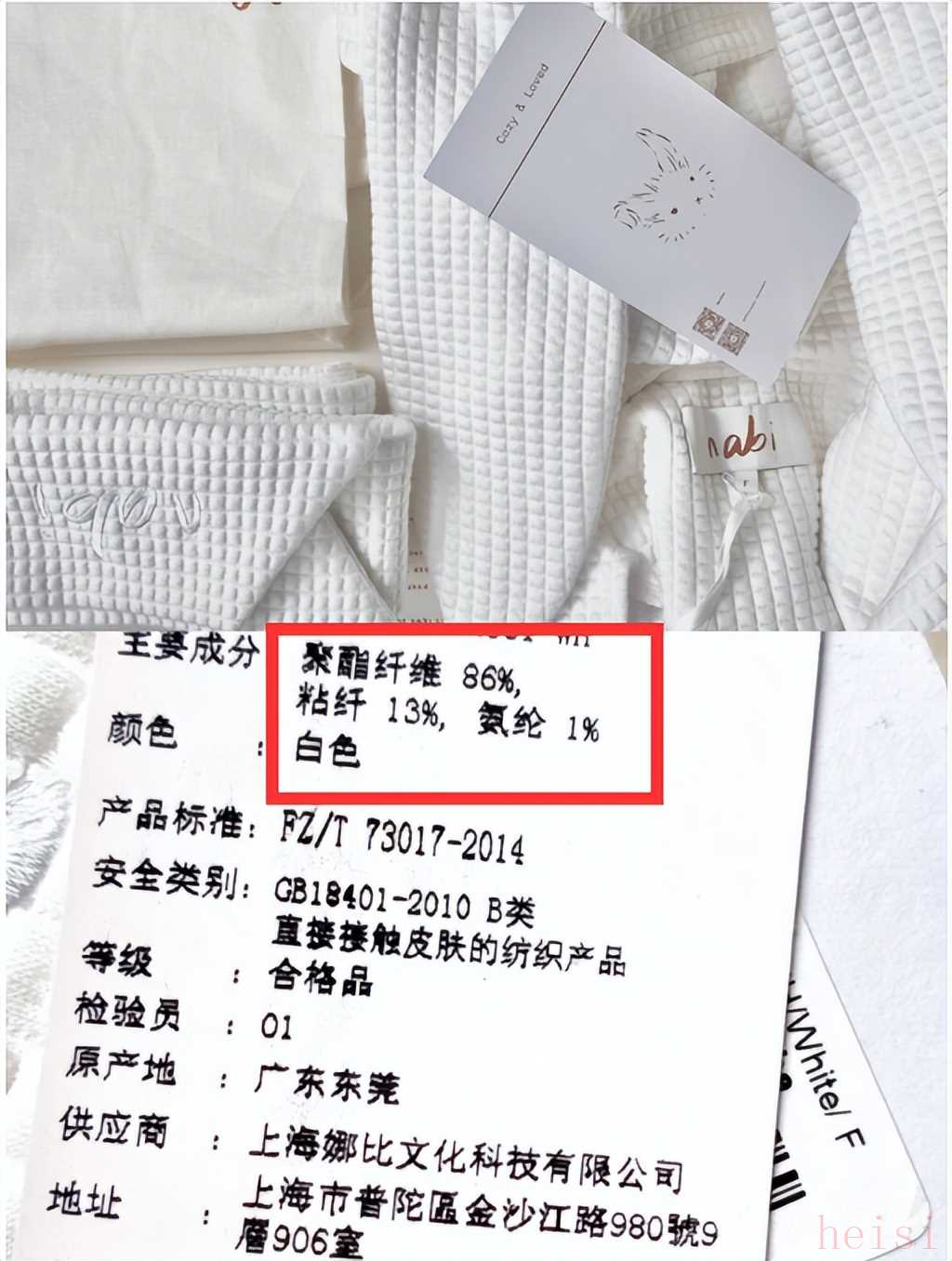 這種面料成本只需0.035元/克,所有款式除了一個(gè)“nabi”的logo完全沒有復(fù)雜的花紋樣式,業(yè)內(nèi)人說(shuō)繡個(gè)LOGO就搞定,是最簡(jiǎn)單便宜的那種。