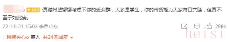 還有一位帶“金粉”標志的粉絲稱:真誠希望娜娜考慮下你的受眾群,大多是學生,你的帶貨能力大家有目共睹,但真不至于如此貴。