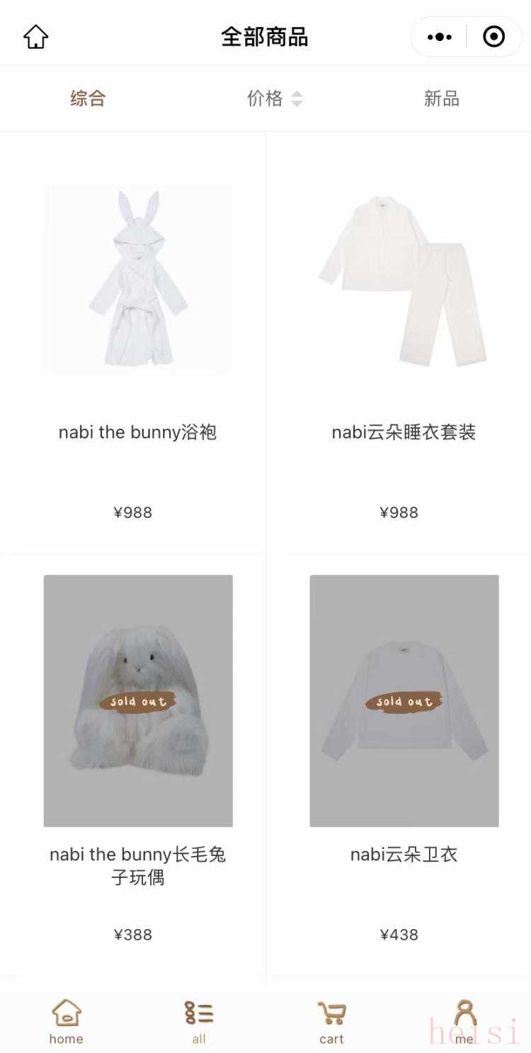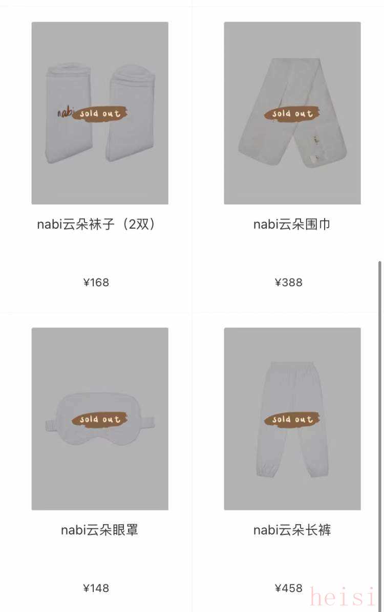 據(jù)悉,nabi主打精致舒適生活方式,記者查詢“nabi”小程序發(fā)現(xiàn),“云朵膠囊新系列”11月22日上線,產(chǎn)品涵蓋圍巾、衛(wèi)衣、長褲、睡衣套裝、浴袍、襪子、眼罩和兔子玩偶在內的8個產(chǎn)品,且定價不低……