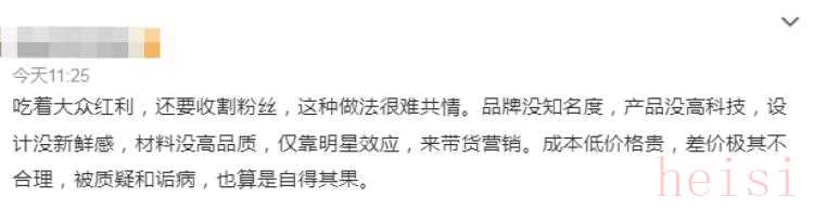 對于明星產(chǎn)品自創(chuàng)品牌定價偏高的問題,有博主吐槽:吃著大眾紅利,還要收割粉絲,這種做法很難共情。成本低價格貴,差價極其不合理,被質疑和詬病,也算是自得其果。
