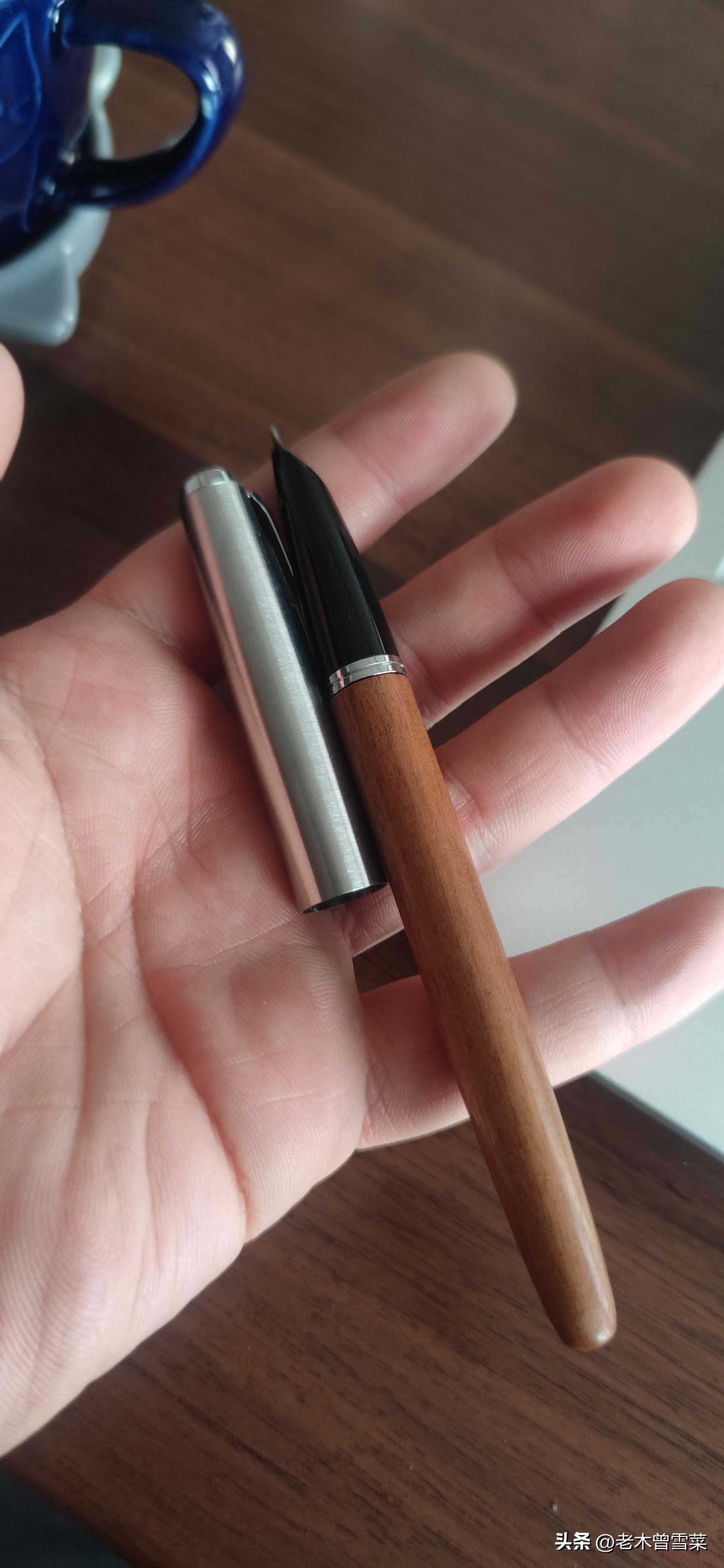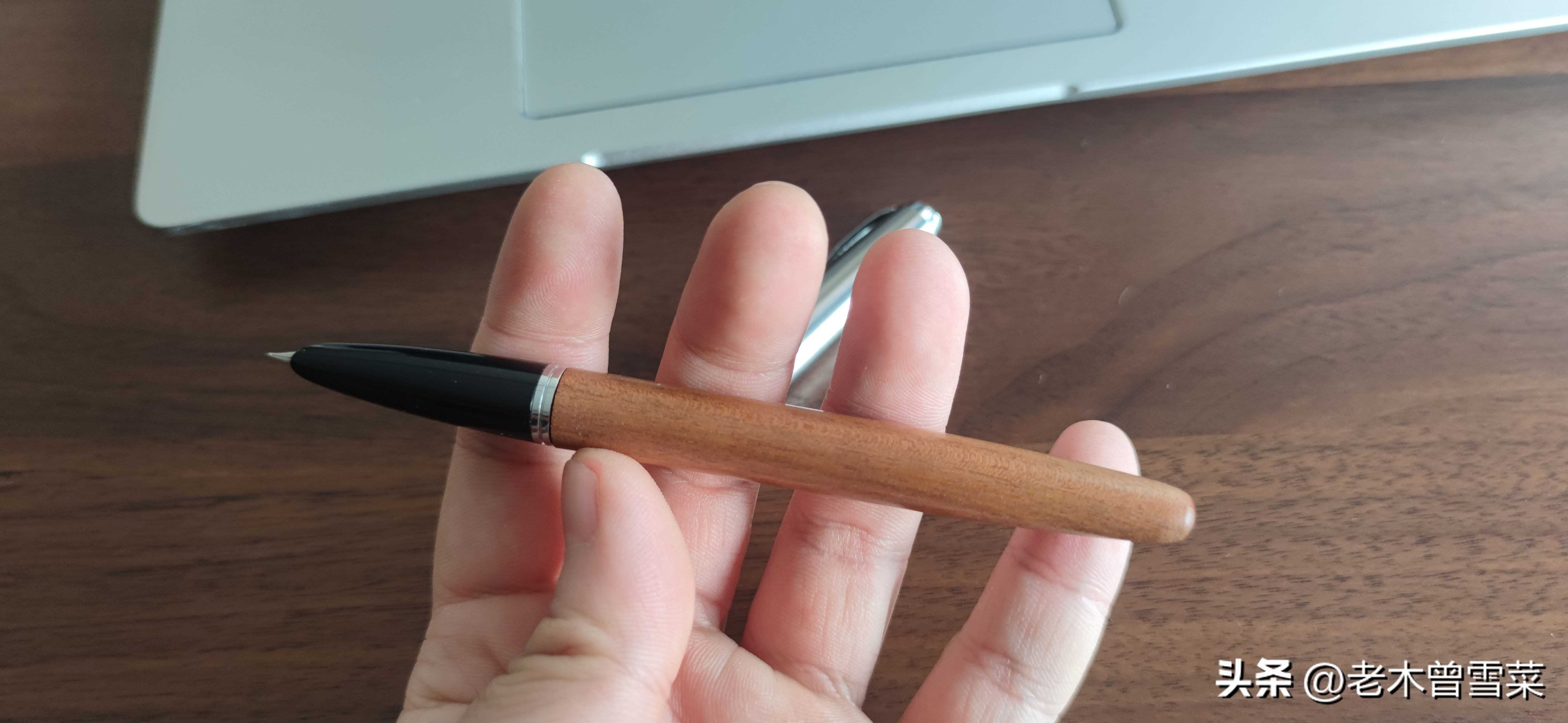 永生616雖然起了這個名字,但和英雄616在比例細節(jié)上,還是有比較明顯差異的,但木桿車得很好,表面光滑,有漆。以實木鋼筆講,質感不如百樂、白金、寫樂那些高價木桿是當然的,但比起樹脂,木桿更對得起售價,看起來也比較有趣。