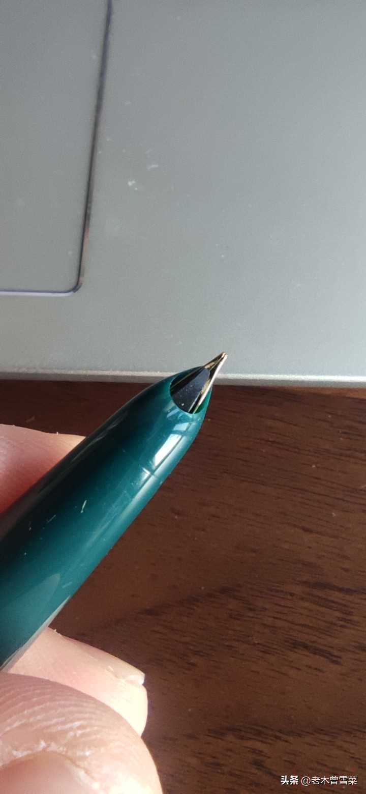 329是英雄品牌下定義概念為特細的暗尖,簡單看銥粒狀態(tài),不覺得細多少,握持感受比較標準,天冠筆尾是平頂,和007屬于類似設計,樣子比較土氣,算是經典款中除了616的第二熱門。