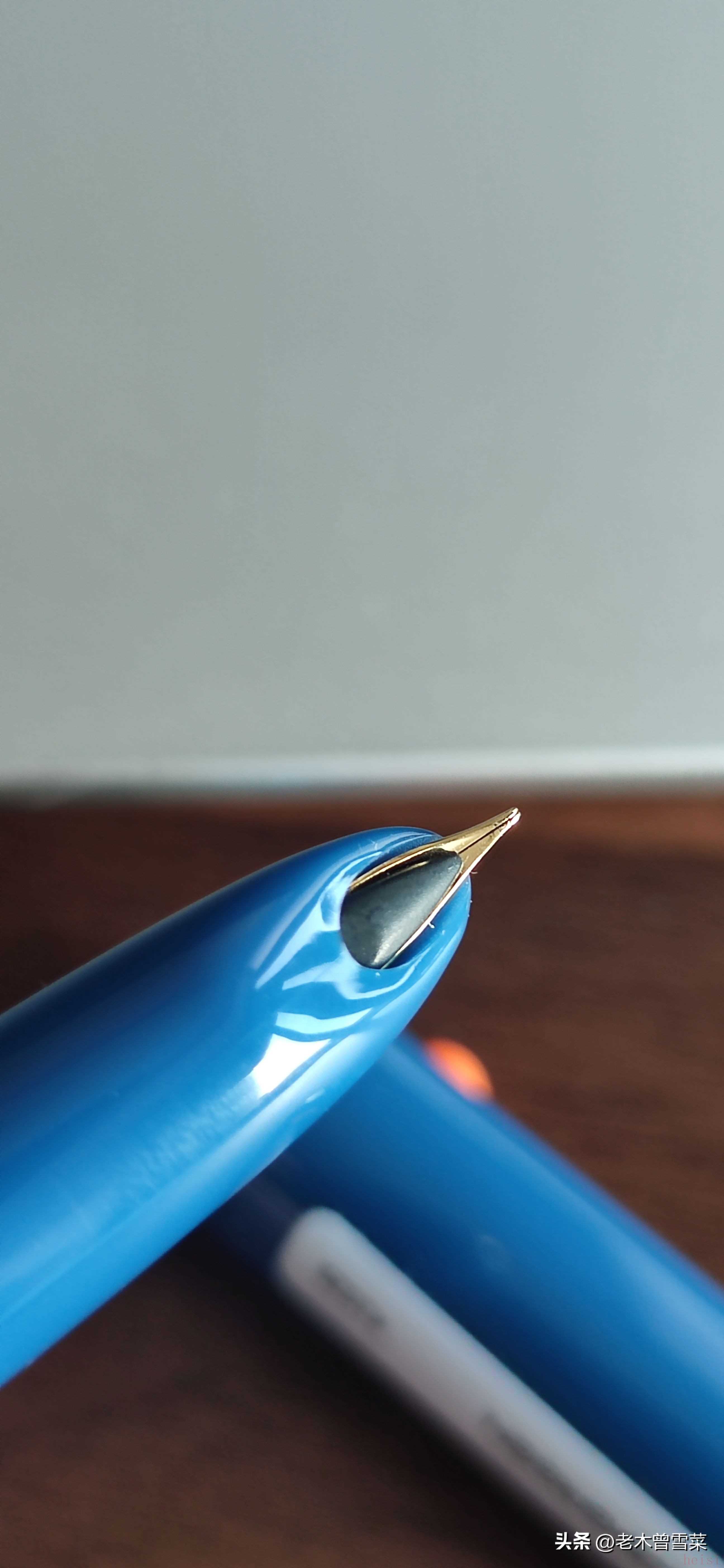 329-2是英雄量產暗尖中我認為最好看的一款,筆尾和帽頂都是收尖設計,筆握還有一段金色的箭標裝飾,要知道,英雄100要是有這個裝飾的款,都要加不少錢。這支收到的,筆尖筆握連接做工也不行,有偏差,算我買了5支英雄,2022年也能看到2個做工不行,可見英雄為了走量,對于品控的忽視程度。