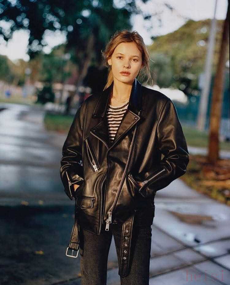 在品類(lèi)較全的產(chǎn)品中,做舊處理的機(jī)車(chē)夾克是最受歡迎的單品之一,也是讓All Saints獲得認(rèn)知度的產(chǎn)品。由于挺括、略頹廢、修身且皮質(zhì)能擋風(fēng),非常適合陰雨連綿的英國(guó),加之Kate Moss、暮光女主Kristen Stewart等明星的追捧,All Saints逐漸成為英國(guó)潮流品牌新貴。