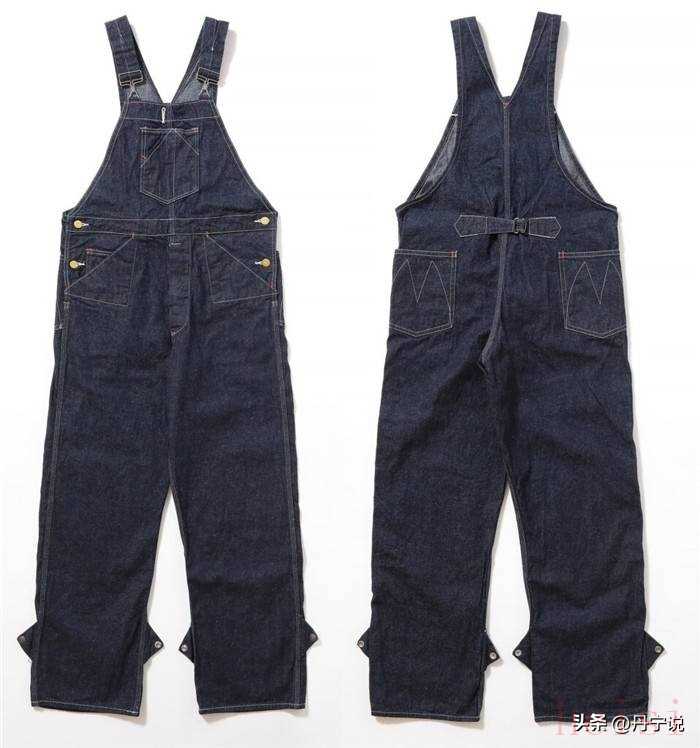 它的版型靈感源自 20 世紀(jì) 30 至 40 年代的牛仔工裝背帶褲,其中一條罕見的 “Union Special” 品牌復(fù)古背帶褲對(duì)其設(shè)計(jì)影響深遠(yuǎn)。面料采用的是 11 盎司的 2×1 織法赤耳牛仔布,深藍(lán)色經(jīng)紗搭配灰色緯紗,產(chǎn)自日本。褲子有著復(fù)雜且實(shí)用的口袋設(shè)計(jì),整體外露的面料赤耳邊非常吸睛,多槽式前胸口袋方便放置工具等物品。背部帶扣可調(diào)節(jié),能適應(yīng)不同身材和穿著需求。黃銅圓環(huán)式紐扣門襟,搭配對(duì)比色三線縫合工藝和紅色套結(jié)裝飾,不僅美觀,而且結(jié)實(shí)耐用。