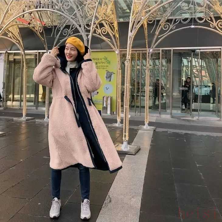 個(gè)人很愛Lee Hyunyi在ins上曬過的這件毛毛外套,連帽以及拉鏈設(shè)計(jì)讓原本有些臃腫的羊羔毛外套變得動感不少。