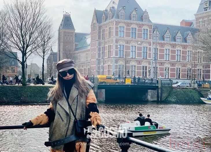 張?zhí)鞇蹌t用報童帽和方形墨鏡玩碰撞,有種混搭氣息。