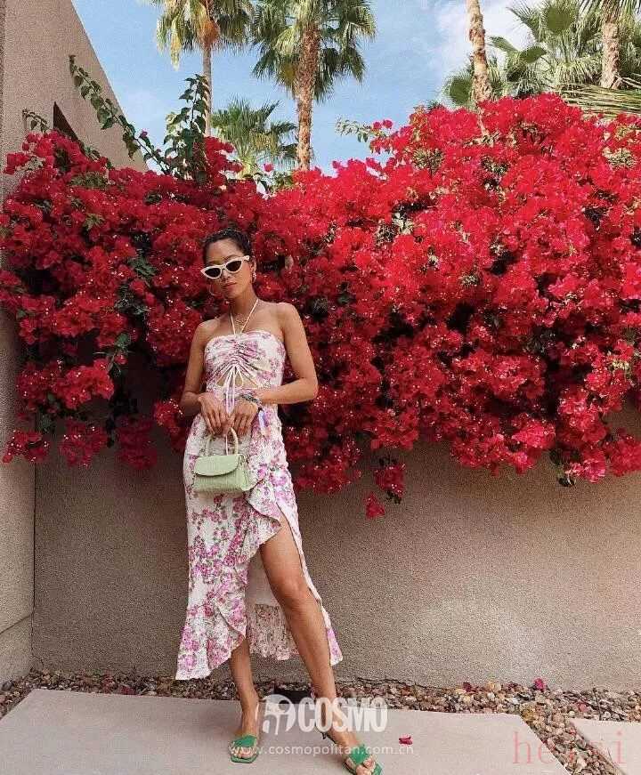 另一種最近各路明星戴得比較多的方形墨鏡是這種有彩色邊裝飾的墨鏡,特別有度假氣息。