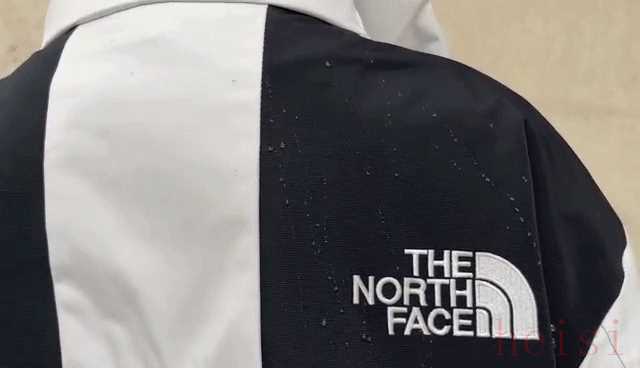 為了測(cè)試其防水性,小編做了個(gè)實(shí)驗(yàn):用水潑在沖鋒衣上,水會(huì)從衣服表面duang duang流走~內(nèi)里并沒(méi)有被浸濕。