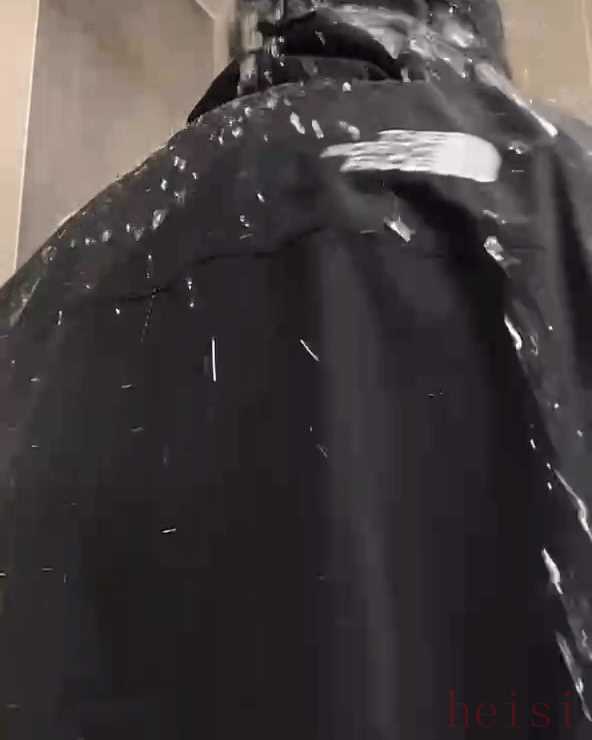 這技術(shù)有點(diǎn)兒像“仿荷葉技術(shù)”,面料表面會(huì)形成斥水層,水潑灑上去會(huì)凝聚成珠,從衣物上滾落。