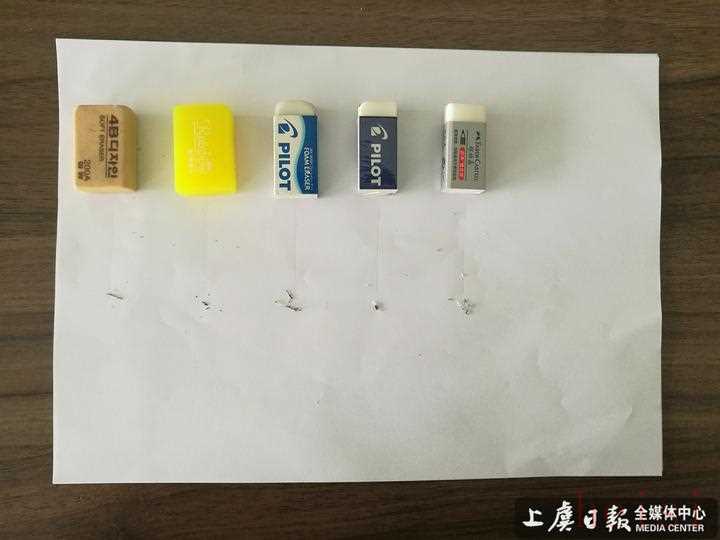 經(jīng)測試,在清潔能力上,以上這5款橡皮不分伯仲,并且它們都軟硬適中,擦起來毫不費力。關(guān)于橡皮的集屑問題,需要提醒大家的是:無論哪款橡皮都不可能做到真正的無屑。所以,不要去輕易相信商家關(guān)于無屑的宣傳。我們也做過一個小調(diào)查,無論是條狀,還是粉末狀,其實都無關(guān)好壞,大概只有個人喜好吧。比如,小編個人覺得條狀的好收拾,其中4B橡皮和百樂橡皮的屑會聚成條狀,并且擦拭后非常干凈,小編的內(nèi)心要為這兩款橡皮投上一票。