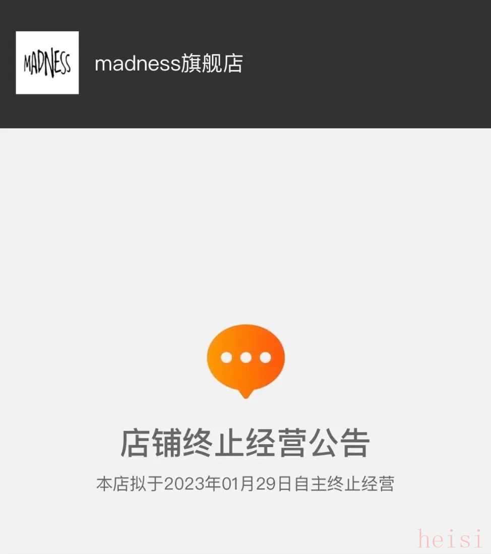 近日,商業(yè)那點事兒小編發(fā)現(xiàn),余文樂個人品牌MADNESS天貓旗艦店已悄然關閉,頁面的店鋪終止營業(yè)公告顯示,該店將于2023年1月29日自主終止運營。