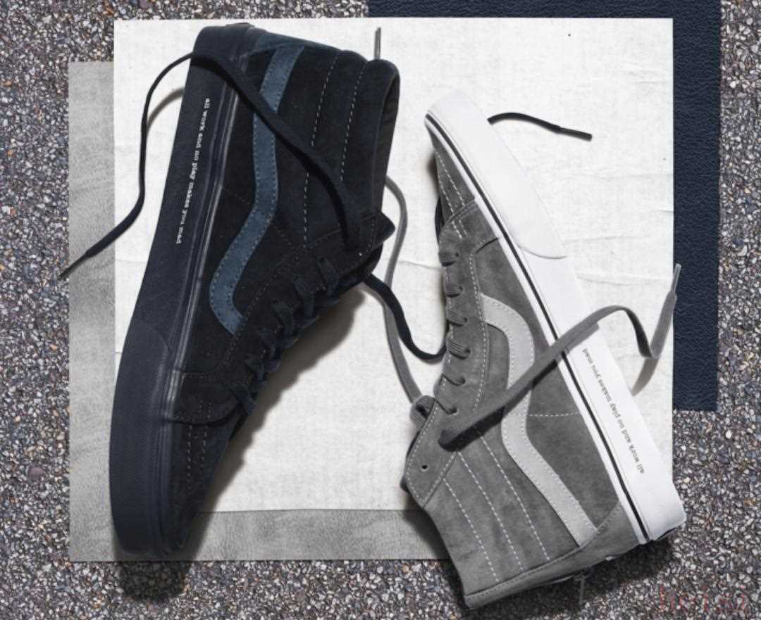 如2017年MADNESS與Vans合作的一款鞋子,保留了Vans鞋子一貫的設計,MADNESS只是在鞋子外側添加了其標語“all work and no play makes you mad”。