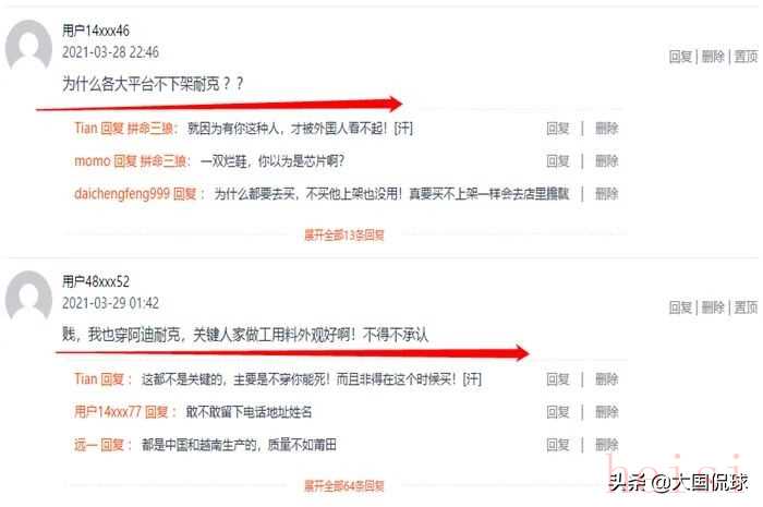 有網(wǎng)友留言稱:為什么要抵制耐克,阿迪等品牌,因為它們就沒有把國人當(dāng)成他們真正顧客,因為它們知道,總有一些“鉤粉”,就喜歡買它們的產(chǎn)品。