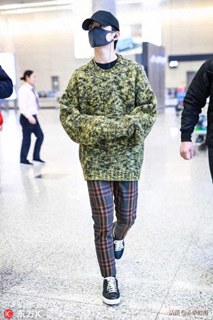 易烊千璽拼色毛衣+格紋休閑褲時(shí)髦帥氣 ,黑色棒球帽+運(yùn)動(dòng)鞋型男潮范 。