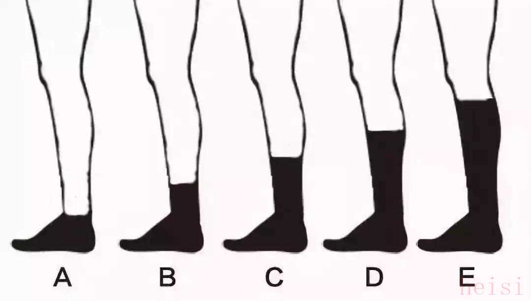 在穿西裝或者是休閑服的時候,至少要穿筒高22cm的襪子,這樣才不會在翹腿時露肉。褲腿和襪子之間如果露一截腿出來,那是是非常尷尬的。在商務(wù)禮儀等更加正式的場所,襪筒的要求還要更高一些。