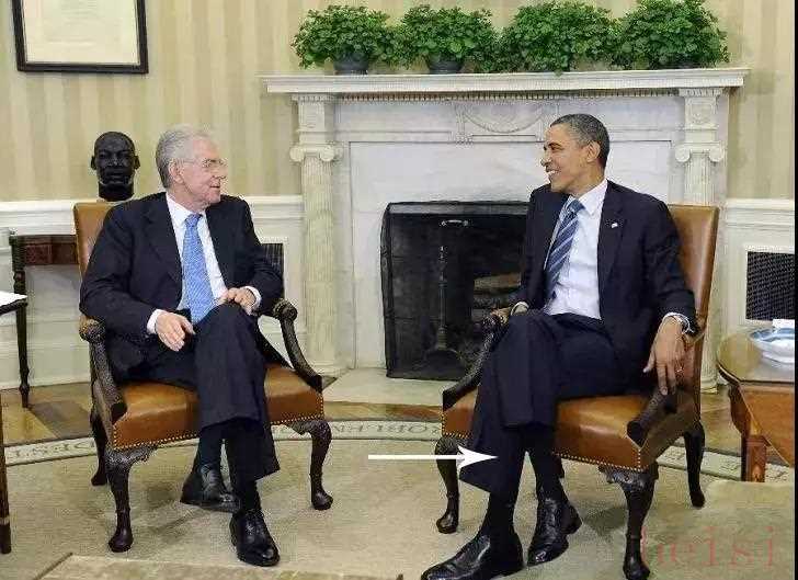 標準的西裝襪顏色為黑、褐、深灰、藏藍,那搭配黑色、或者深藍色帶菱格提花的襪子最好,剛好搭配最正式的牛津鞋或者德比鞋。上圖奧巴馬穿的這種襪子叫crew socks,通常筒長26-30cm,是歐美標準的正裝襪。國內(nèi)的正裝商務(wù)襪,大多遠遠短于這個長度,甚至超過18厘米的都很少,有時候露腿難免尷尬。(所以本格建議換上后坐下抬腿試試)