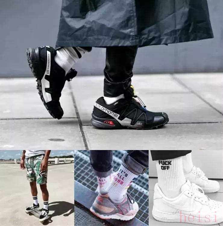 中筒襪是男襪中最出彩的部分,這種款式在花色上更注重設(shè)計感和鬼馬創(chuàng)意,所以搭配性很強,也是街頭文化的主要元素。就各種街拍來看,運動褲+運動鞋+設(shè)計感中筒襪=少年感爆棚。