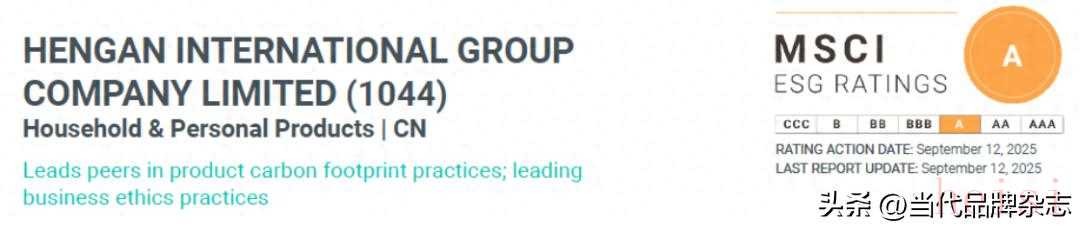 恒安國際控股有限公司(以下簡稱“恒安國際”)近日宣布,其已成功獲得MSCI ESG評級,評級結(jié)果為A,標(biāo)志著恒安國際在可持續(xù)發(fā)展領(lǐng)域取得了卓越成就,位列行業(yè)第一。