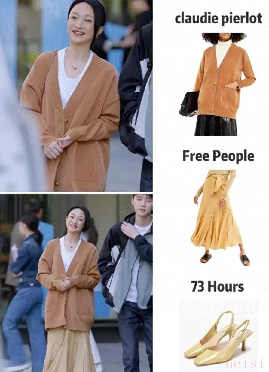 尤其是顏色飽和度低的針織衫出鏡率極高,本人最喜歡就是氣質(zhì)棕這套look。中長開衫+同色長裙,雖然周迅個子不高看似不適合長款開衫,but搭配同色裙裝,視線就會轉(zhuǎn)移至上半身,整體會非常和諧。裙擺的魚尾&裸色slingback也更顯靈動氣質(zhì),不死板。同時內(nèi)搭白T提亮膚色,增加層次感,超顯嫩。