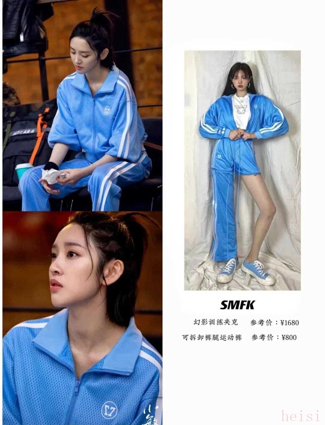 還有一套運動裝是total blue,冰藍色辨識度高&彰顯獨特個性。側(cè)邊懷舊的雙杠裝飾形似“校服”,簡單干凈,青春氣息滿滿。整體出自國貨之光SMFK,以街頭風格為主基調(diào) ,融入“運動/舞蹈/戲劇/騎士”等元素,走黑白酷颯辣妹風,可鹽可甜。