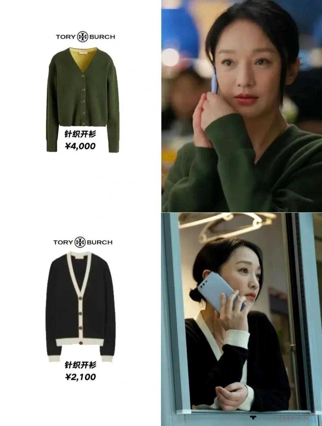 還有兩件開衫來自美式輕奢品牌Tory Burch的,復古墨綠顯白又高級的;黑色白邊的會更精致,有點小香那味兒了。