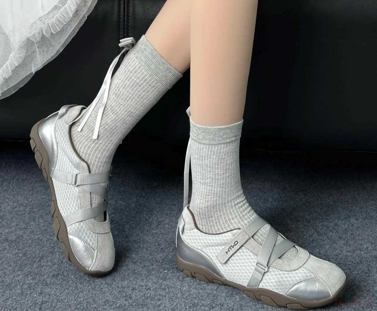 還有一種德訓(xùn)鞋很火,就是芭蕾德訓(xùn)鞋,它完美戳中了“既愛甜美風(fēng),又不可能真的穿芭蕾舞鞋”的小仙女們的心。