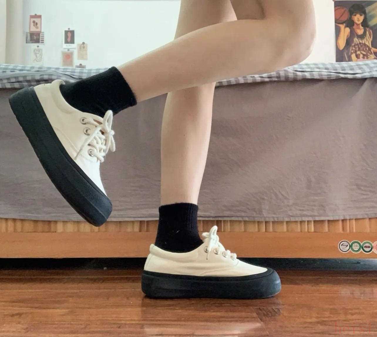 還好,這雙厚底帆布鞋就是來救場(chǎng)的!除了厚底,鞋頭也偏圓,不擠小腳趾,寬腳丫子穿了都說好!