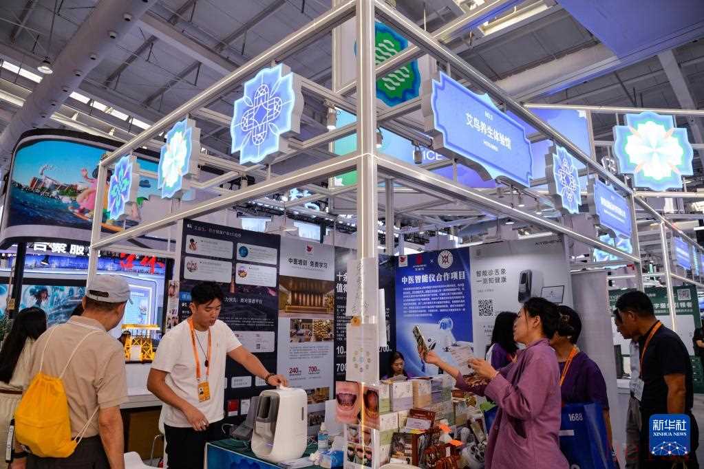 9月12日,在北京首鋼園,人們在2025年服貿(mào)會澳門艾鳥養(yǎng)生體驗(yàn)館展臺參觀、咨詢。新華社記者 徐欽 攝