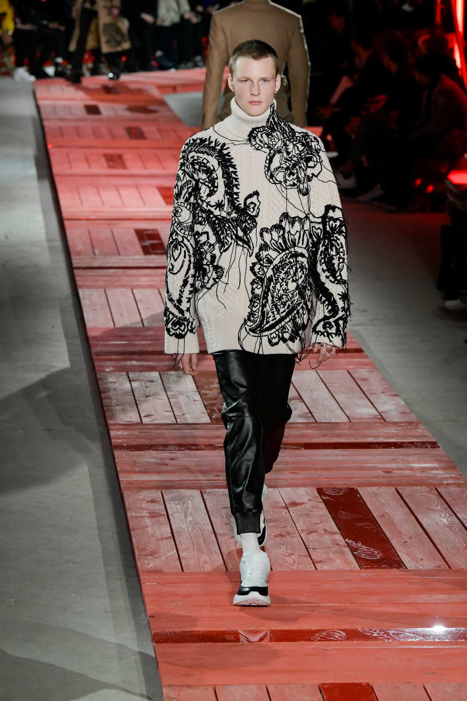 1月19日,模特在法國巴黎男裝周上展示亞歷山大·麥昆品牌2018/19秋冬新品。