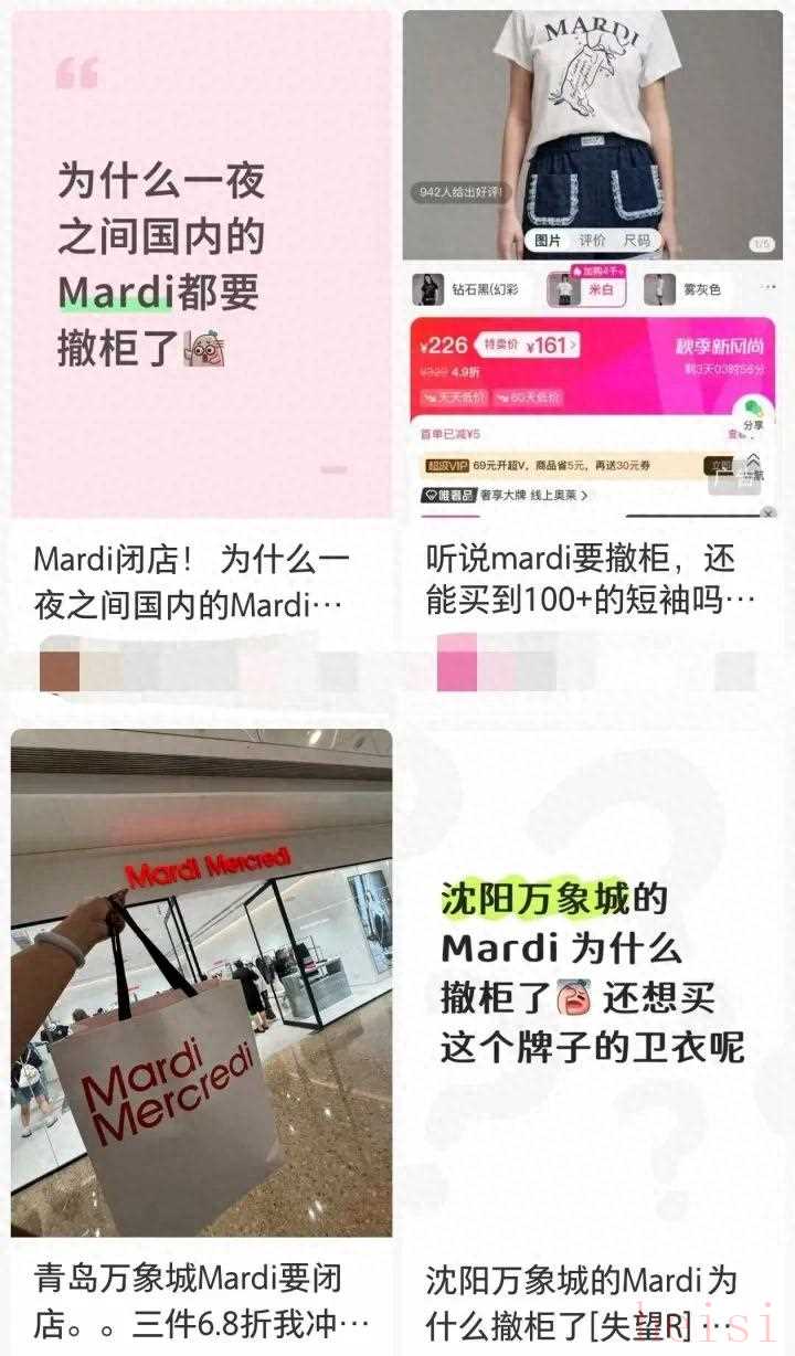 據(jù)界面新聞報道,近期,韓國時尚品牌Mardi Mercredi中國多地門店計劃撤柜,普遍開始打折清倉。
