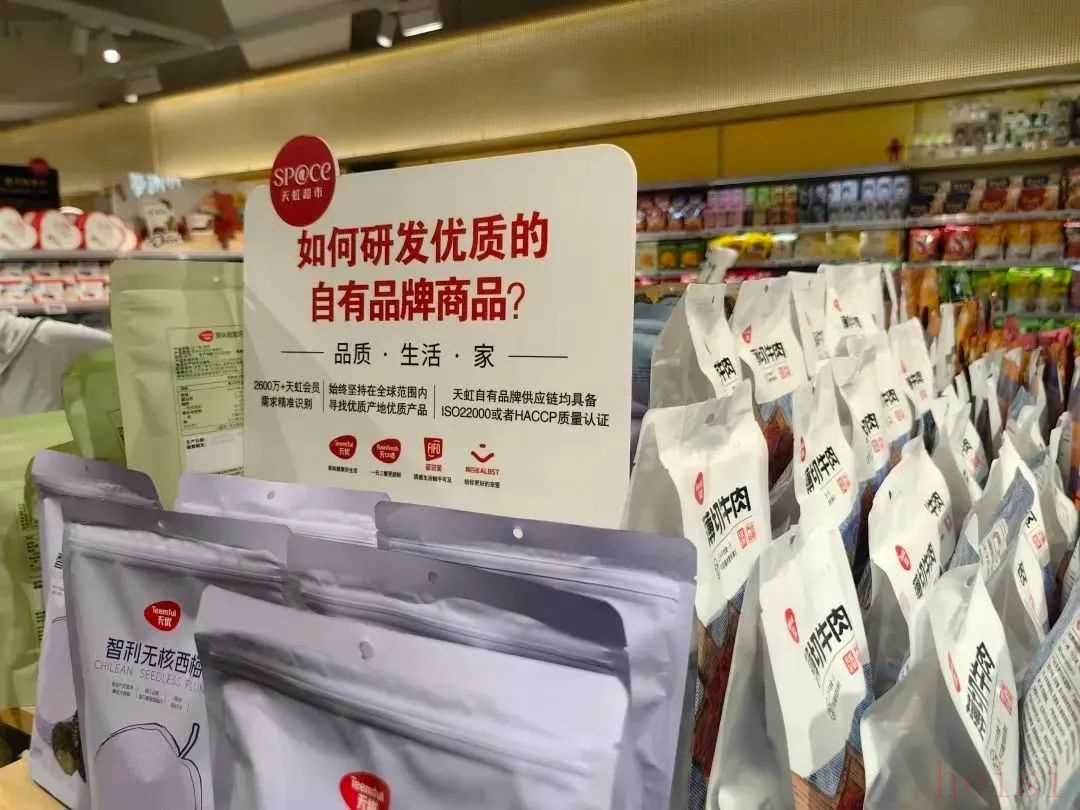 天虹數(shù)科是比較早進(jìn)行自有品牌開發(fā)的中國本土超市企業(yè)之一,始終堅(jiān)持“品質(zhì)領(lǐng)先”的開發(fā)理念,共計(jì)開發(fā)了天優(yōu)、天口味、菲爾芙和奧百思4個(gè)品牌,累計(jì)1000多個(gè)單品,整體銷售占比達(dá)到20%左右。