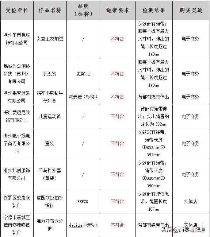 ▲兒童及嬰幼兒服裝繩帶要求不符合標(biāo)準(zhǔn)情況表