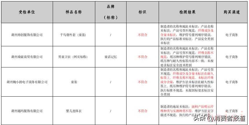 ▲兒童及嬰幼兒服裝標(biāo)識不符合標(biāo)準(zhǔn)情況表