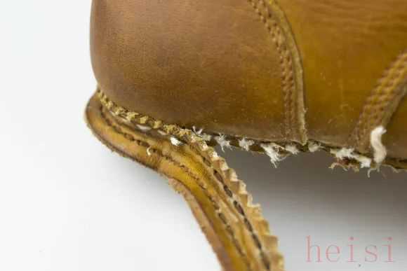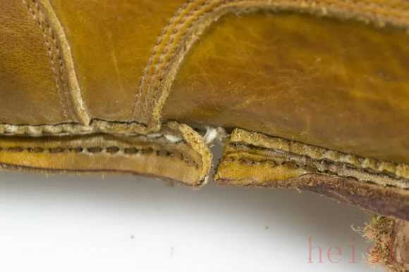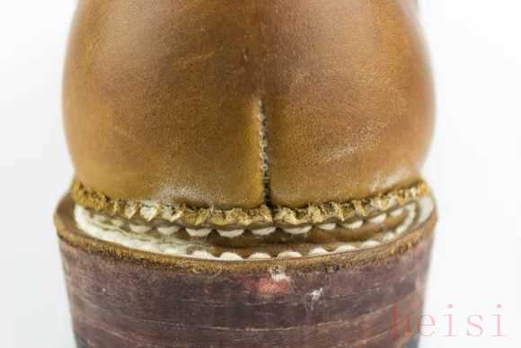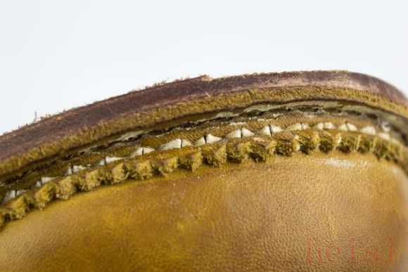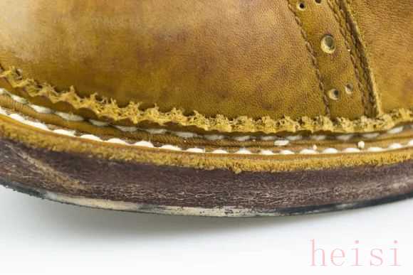 挪威縫的鞋子特點非常顯著,就是附著在鞋子外沿的3層精美縫線,而傳統(tǒng)的固特異鞋只有一道縫線。