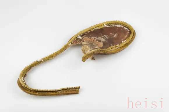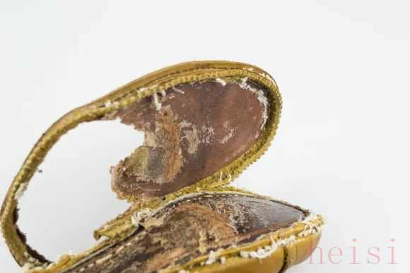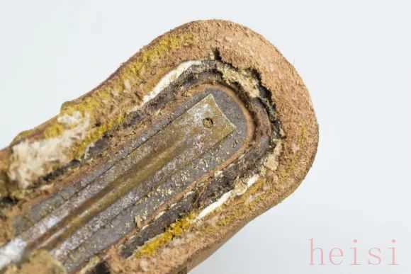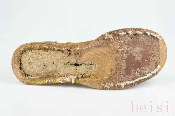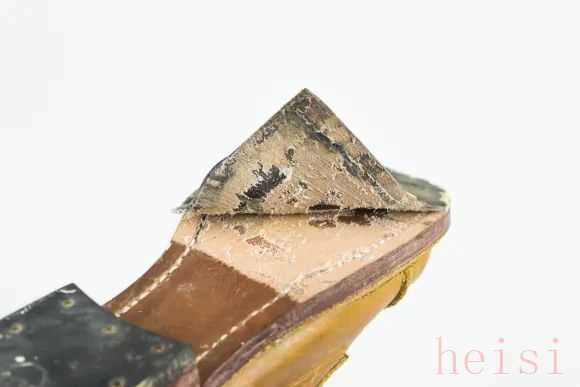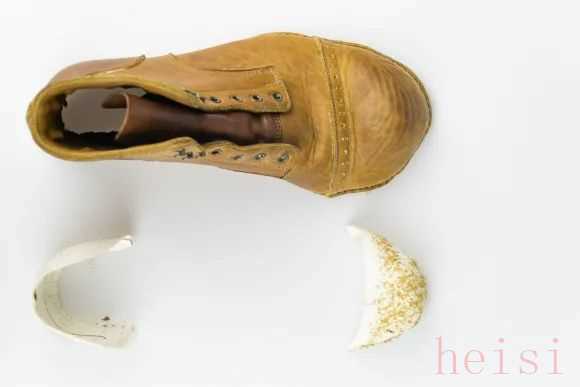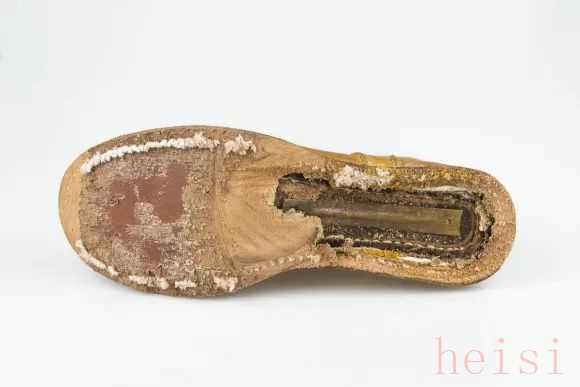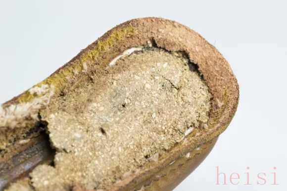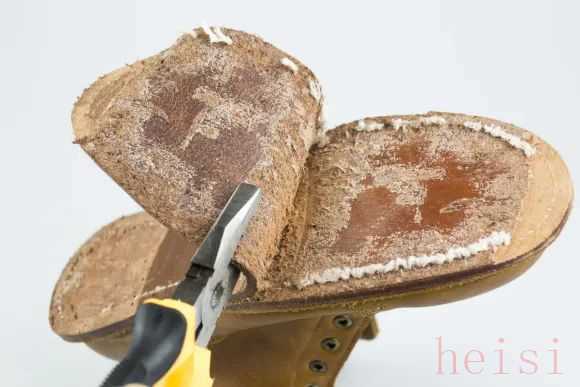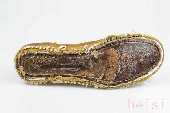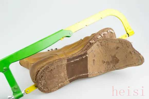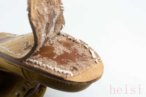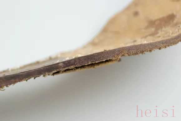 本打算把兩層皮底分別鋸開的,但是鋸到后面的時候,發(fā)現(xiàn)鋸?fù)崃?,直接把鞋后掌部位的兩層皮底都鋸了下來,露出了填充的軟?/strong>