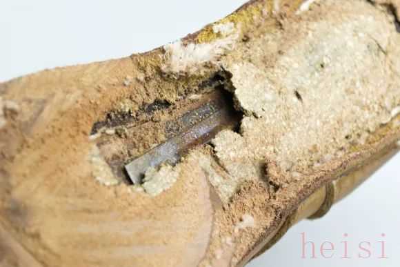開始了,用鋸子鋸開一點后,準備把外層皮底撕下來