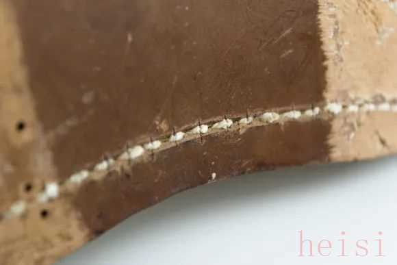 2. "多層材料疊加(Layering):" 在進行挪威縫之前,通常會在鞋底和鞋跟/中底的接縫區(qū)域預(yù)先疊加多層薄的皮條(Shank)。這些皮條的作用是引導(dǎo)縫線,并提供額外的支撐和緩沖,確保接縫處的強度和耐久性。