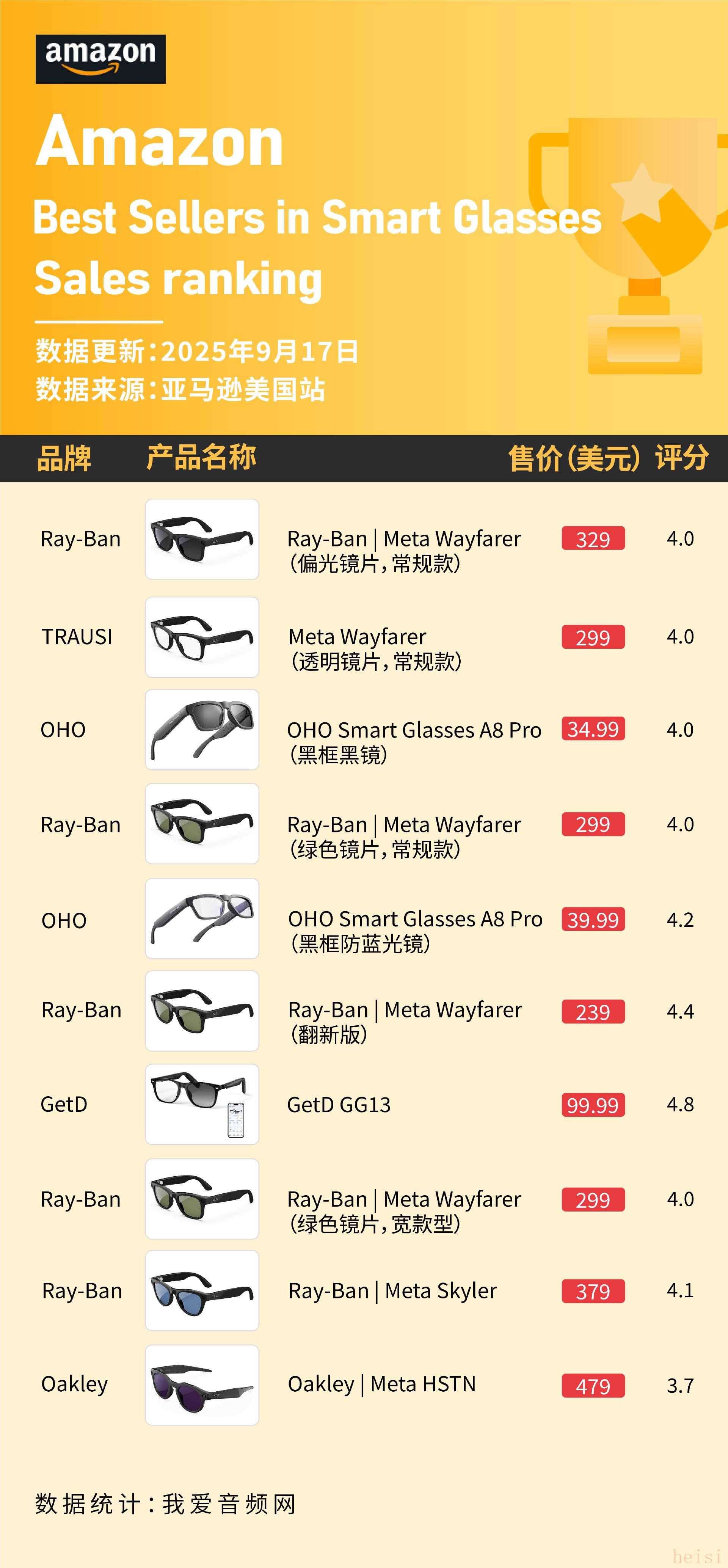 這些智能眼鏡美國亞馬遜熱銷,9月銷售數(shù)據(jù)驚人公布!
