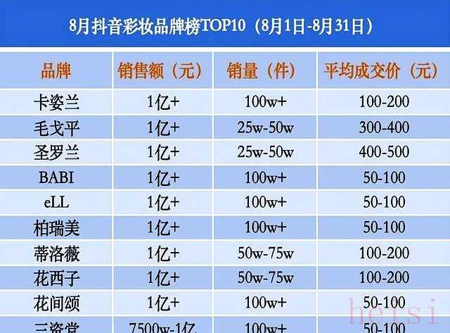 關(guān)于您提到的“8月抖音TOP10品牌榜,赫蓮娜、海藍之謎環(huán)比爆增|美妝指數(shù)”這個信息點,我們可以解讀如下: