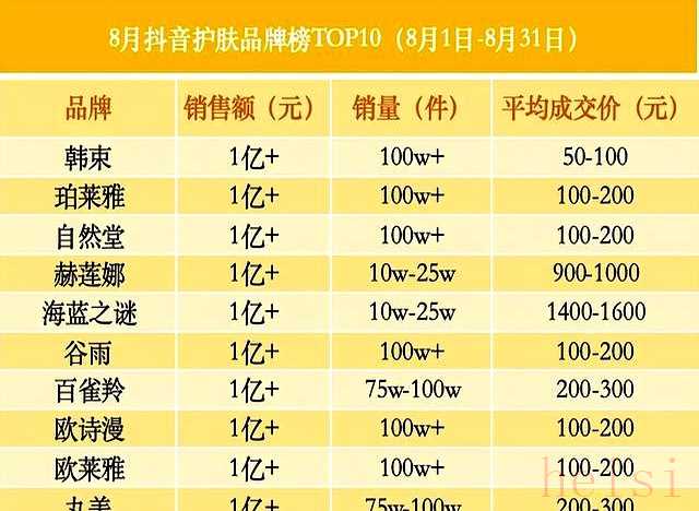 8月抖音美妝指數(shù)飆升,赫蓮娜、海藍之謎領(lǐng)銜TOP10品牌榜,環(huán)比激增搶眼表現(xiàn)!