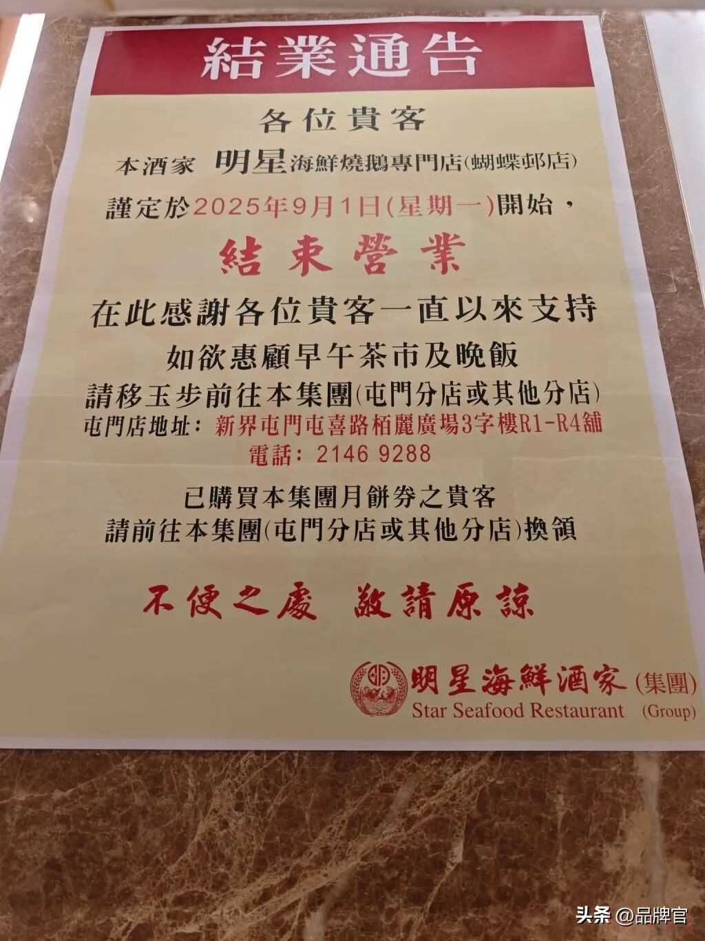 然而,沒有人會想到,曾經(jīng)燈火輝煌、人聲鼎沸的明星海鮮,終有一天會在鐵閘緩緩落下時,成為香港酒樓謝幕潮中的一環(huán)。