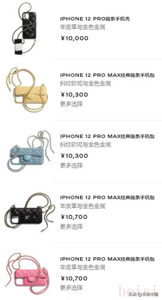 珠寶廠商喜歡制作熱門款手機定制款產(chǎn)品,而奢侈品大牌就喜歡應聲推出一些專屬手機配件。近日,香奈兒發(fā)布了幾款iPhone 12 Pro系列專用的手機殼產(chǎn)品,共有幾款可以選擇,好不好看另說,它們的價格是真的貴,1萬元人民幣起步。