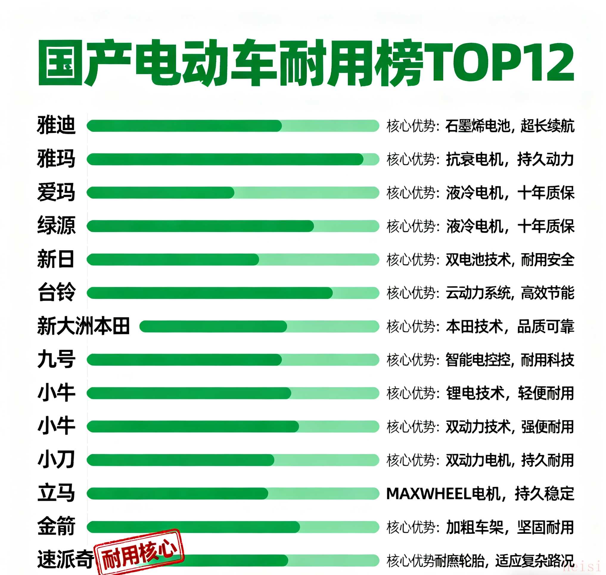電動(dòng)車早已成為日常通勤的“剛需工具”,雖購置成本不高,但沒人愿意頻繁面對(duì)修車、換車的麻煩——選一輛耐用的電動(dòng)車,才是省錢又省心的關(guān)鍵。常有讀者咨詢“哪個(gè)品牌電動(dòng)車質(zhì)量靠譜”,近期我整理了一份國產(chǎn)耐用電動(dòng)車排名榜單,結(jié)合行業(yè)標(biāo)準(zhǔn)與實(shí)際體驗(yàn),今天就為大家詳細(xì)拆解,幫你避開選購誤區(qū)。